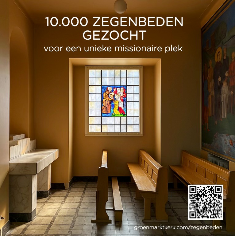 Haarlem krijgt er een bijzondere missionaire ontmoetingsplek bij. re:connect richt de Groenmarktkerk, een van de grootste kerkgebouwen van Haarlem, opnieuw in. Zo komt er een gebedskapel, die wordt aangekleed met een kleurrijk lettermozaïek van 10.000 zegenbeden! Iedereen kan zijn of haar eigen zegenbede insturen! Klik hier om jouw zegenbede door te geven.