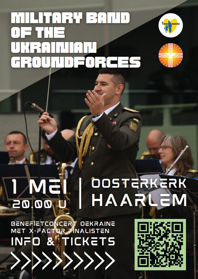 Op vrijdagavond 1 mei is er in de Oosterkerk een benefietconcert van het Militaire Orkest van de Oekraïense Grondtroepen (Military Band of the Ukrainian Groundforces) Het orkest van de 44th Brigade staat o.l.v. luitenant-kolonel Roman Pavliv.