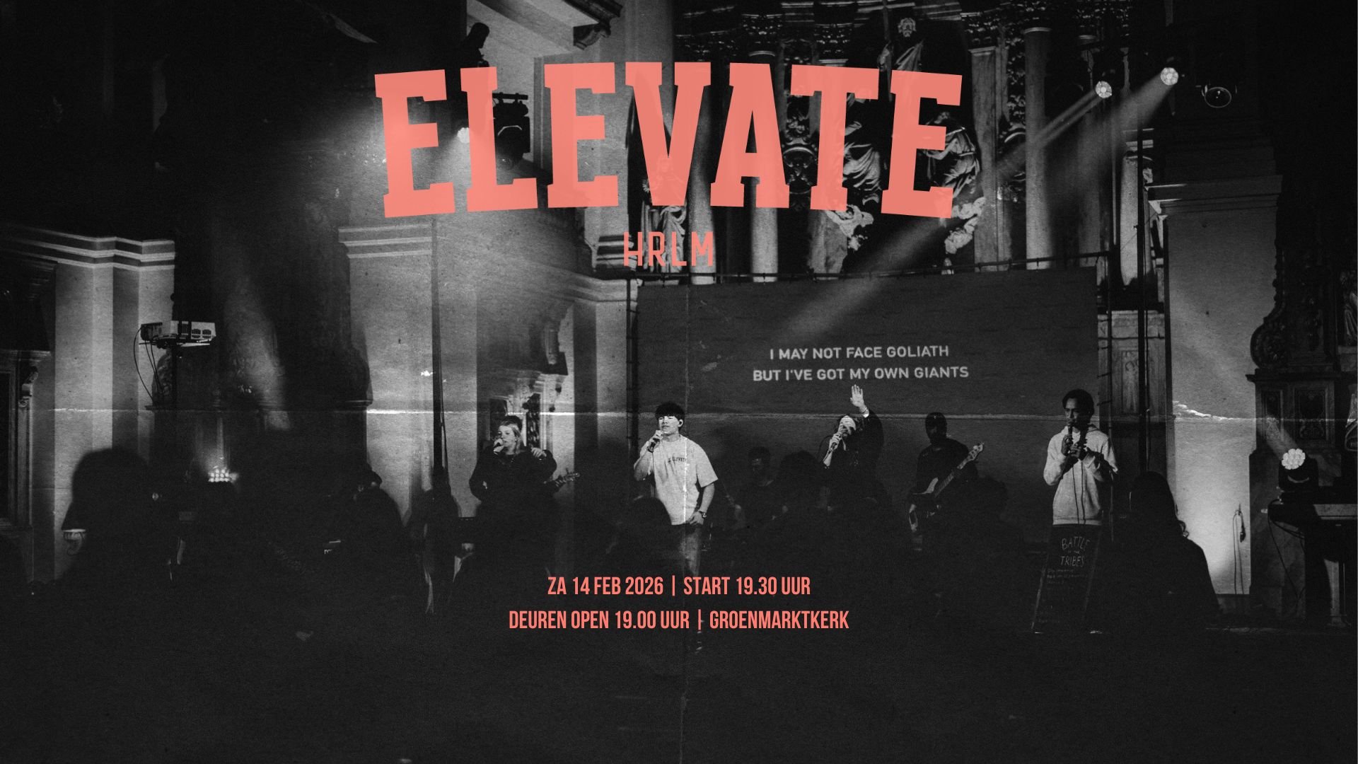 Zaterdagavond 14 februari is Elevate HRLM er weer. Je bent welkom vanaf 19:30 uur in de Groenmarktkerk. Spreker die avond wordt z.s.m. bekend gemaakt.