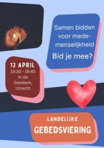 Dit heeft geresulteerd in een landelijke gebedsviering op zondagmiddag 12 april van 15.30 tot 16.45 uur in de gotische Domkerk in Utrecht. Daar wordt samen met elkaar gebeden voor medemenselijkheid. Het thema van de dienst is Welkom in Gods huis. Iedereen is welkom in Gods huis.