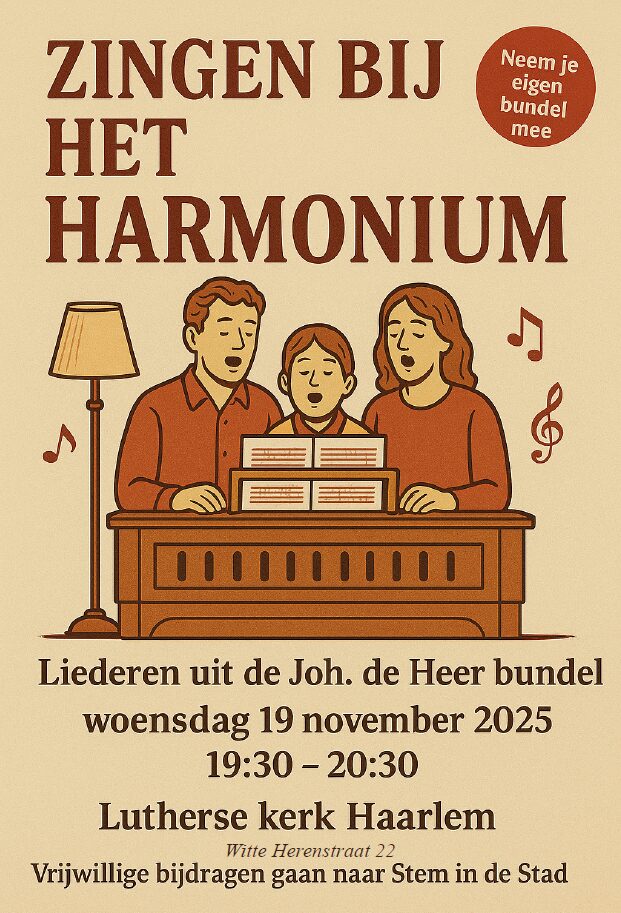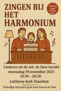 Zo af en toe is er in de Lutherse Kerk de gelegenheid om rond het harmonium liederen uit de bundel van Johannes de Heer te zingen.
