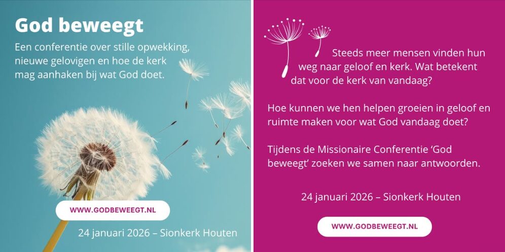 Daarover gaat de vierde Missionaire Conferentie op zaterdag 24 januari in Houten. Samen zoeken de aanwezigen daar naar antwoorden. Het thema is God beweegt.