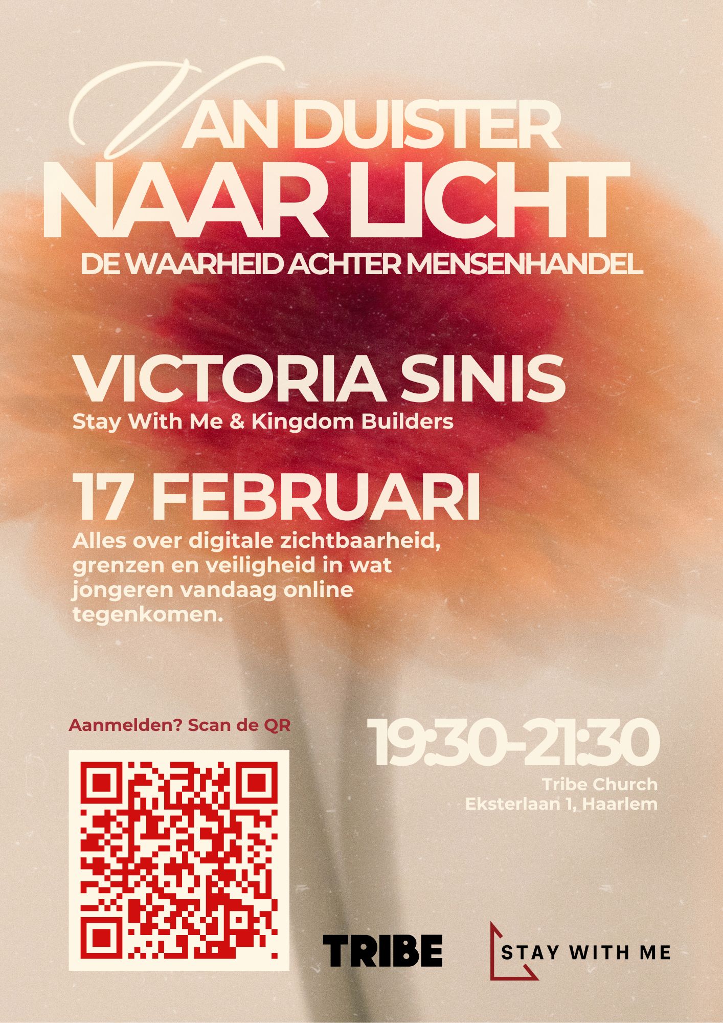Stay With Me organiseert op dinsdagavond 17 februari in het kerkgebouw van Tribe een verdiepingsavond met als thema Van duister naar licht, de waarheid achter mensenhandel.
